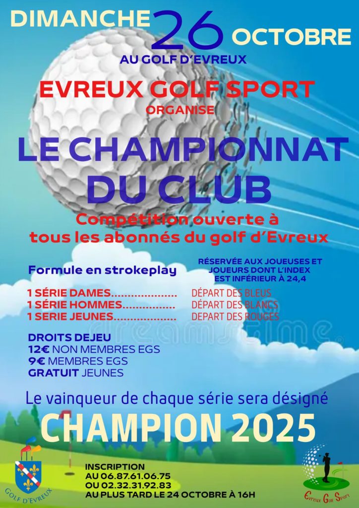 Inscription au 06.87.61.06.75 ou à l’accueil du Golf.