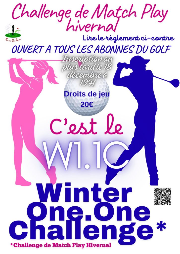 Challenge de Match Play Hivernal baptisé W1.1C ou Winter One.One Challenge.C’est une animation dans laquelle vous jouerez dans une formule de match play qui prendra en compte les différences de handicap (index) par l’attribution de « jockers » au joueur moins bien classé.